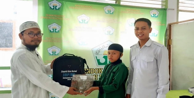 Setelah Melalui 2 tahap seleksi OSN ( Tingkat Sekolah dan Tingkat Kecamatan ), Muhammad Firdzi kembali akan mengikuti Seleksi Tingkat Kabupaten yang rencana akan di laksanakan di Hotel sutan Raja secara daring. Kepala Madrasah Tsanawiyah Attarbiyah Islamiyah Kolaka, Ust. Ahwal Miswari, Lc, MA Menyerahkan Baju dan Tas kepada Muhammad Firdzi yang di dampingi oleh guru pembimbing Muhammad Zainal, S.Pd. Semoga Nak Muhammad Firdzi bisa meraih yang terbaik di tingkat kebupaten dan mengharumkan nama ....