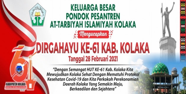 Keluarga Besar Pondok Pesantren Attarbiyah Islamiyah Kolaka, Mengucapkan Dirgahayu Kabupaten Kolaka Ke 61, Semoga Kolaka segera Terbebas dari Covid-19 Ekonominya kuat, masyarakatnya sejahterah dan senantiasa mendapatkan rahmat dan magfirah Allah swt. ....